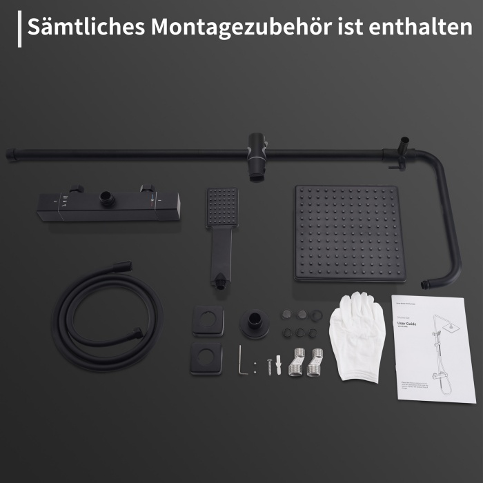 Schwarzes Duschsäulen-Duschsystem mit Badezimmer-Thermostat-Duschset