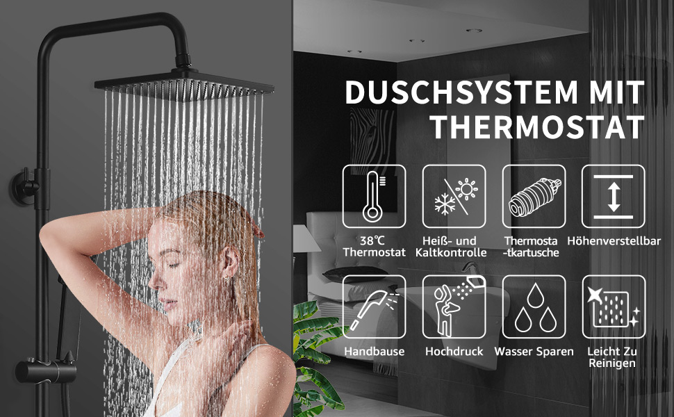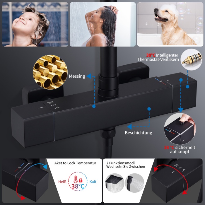 - Konstante Temperatur verhindert, dass das Auslasswasser zu heiß oder zu kalt wird. Thermostatventil 38°C zur Vermeidung von Verbrennungen, besonders geeignet für Kinder und ältere Menschen.