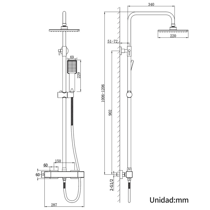 - Die Höhe des Duschständers ist verstellbar und eignet sich für verschiedene Benutzer, insbesondere für Kinder und Personen mit eingeschränkter Mobilität, um Situationen zu vermeiden, in denen die Handhöhe zu hoch und schwer zu erreichen ist.